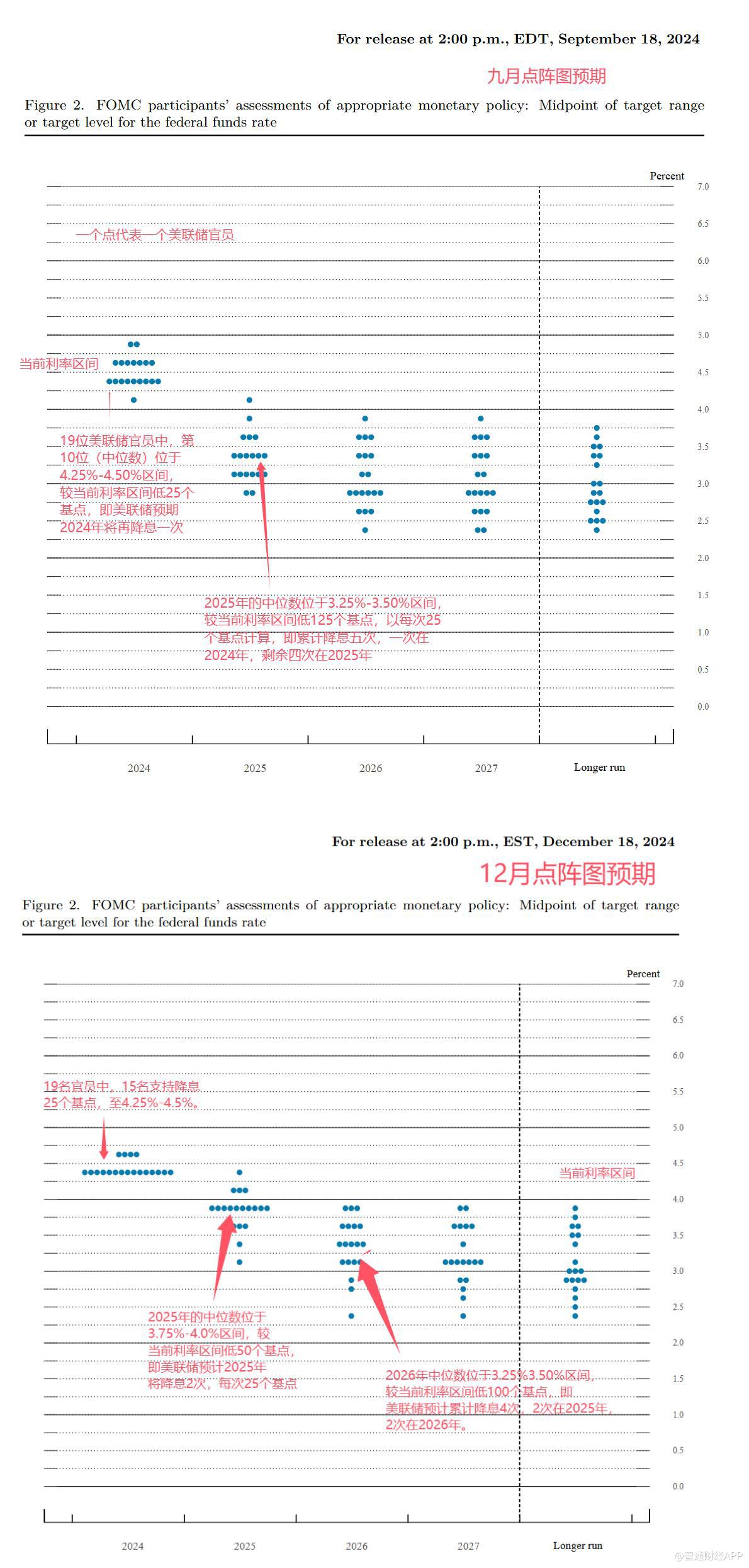 在宣布本次25个基点的降息后,美联储通过备受关注的“点阵图”显示,预计到2025年仅再降息两次。这与9月预测相比,计划中的降息次数减半。