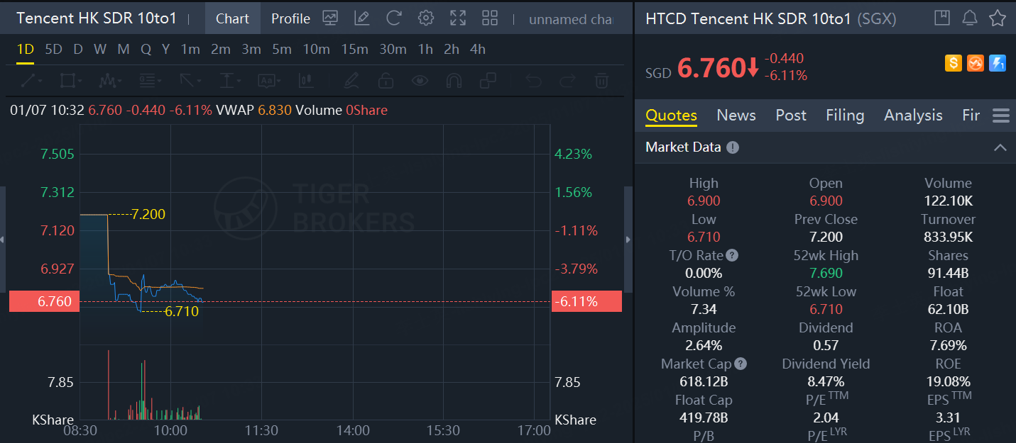 Tencent HK SDR 10to1 sank 6% on Tuesday.