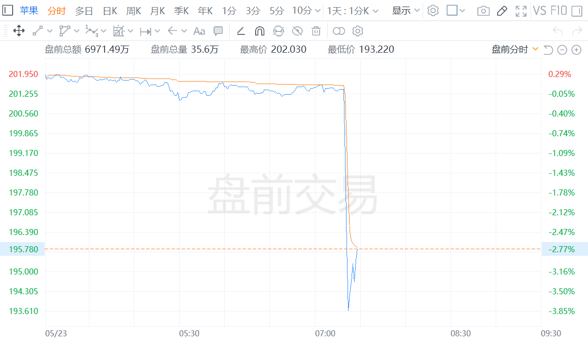 格隆汇5月23日|苹果(AAPL.US)盘前跳水跌近4%。消息面上,特朗普威胁称,如果iPhone不在美国制造,将对苹果征收25%的关税。