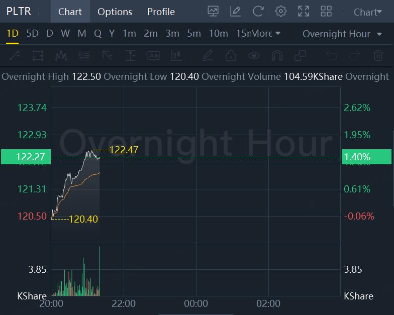 Shares of Palantir rose 1.4% in overnight trading.
