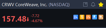CoreWeave fell 5% and Core Scientific fell 20% in Monday trading.