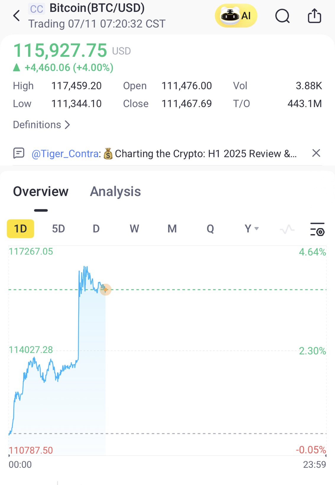 The world's largest cryptocurrency BTC rose to $115,927.75 as of 19:22 ET, breaking the $113,734.64 record scored earlier on Thursday. It is now up about 24% this year.