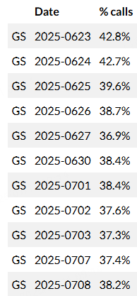 Table 3: GS call volume prior to second-quarter 2025 earnings