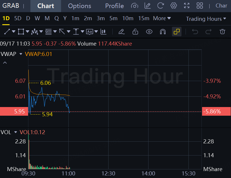 Shares of Grab Holdings dropped about 6% on Wednesday.