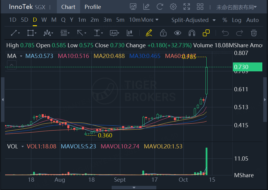 Shares of the company surge 32.73% at 4:50 pm, Oct 13.