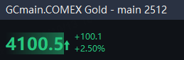 U.S. gold futures for December delivery surged 2.5% to $4,100.50.