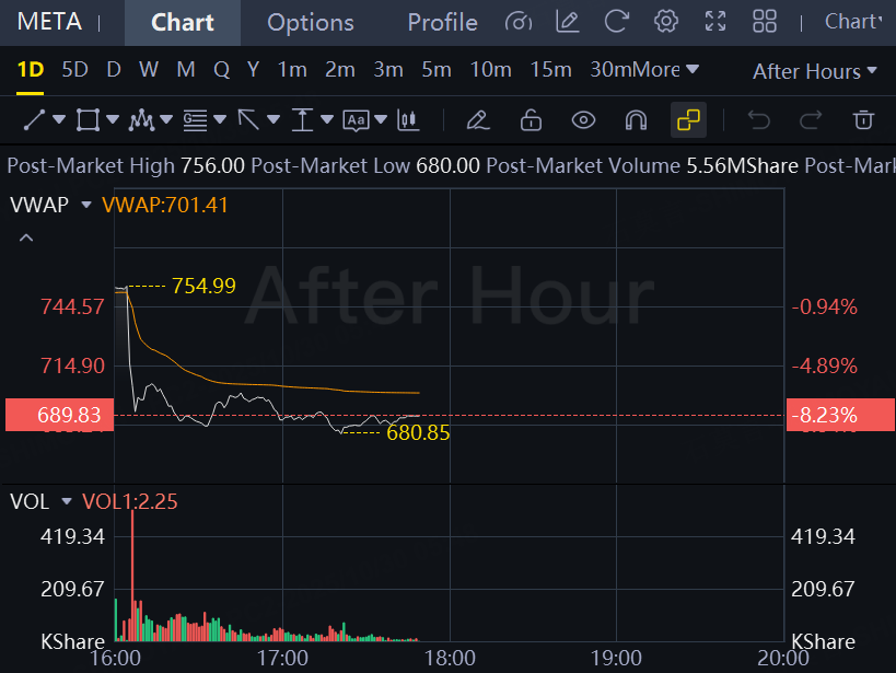 Shares of the company fell over 8% after the bell. Excluding the charge, Meta's third-quarter net income would have increased to $18.64 billion, compared to the reported net income of $2.71 billion.