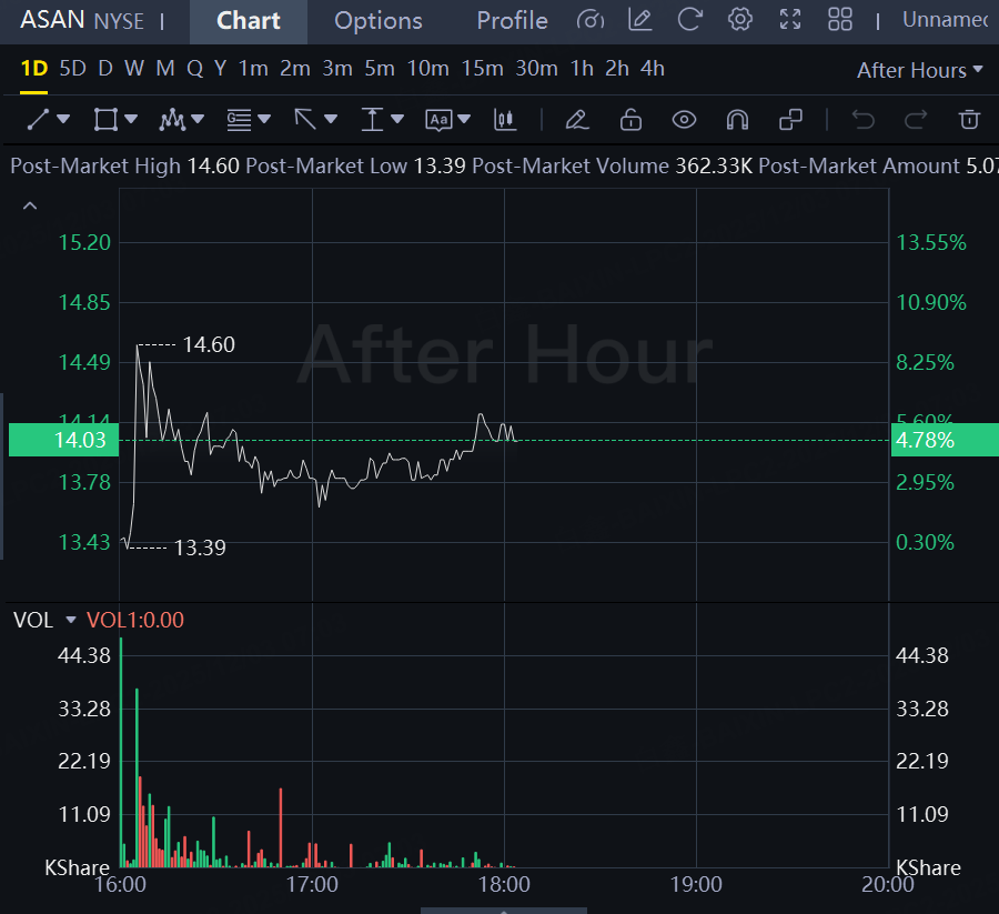 Asana (ASAN) reported late Tuesday fiscal Q3 non-GAAP net income of $0.07 per share, up from a loss of $0.02 a year earlier.