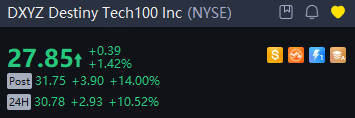 Destiny Tech100 Inc rose 11% in overnight trading, EchoStar jumped 3%.