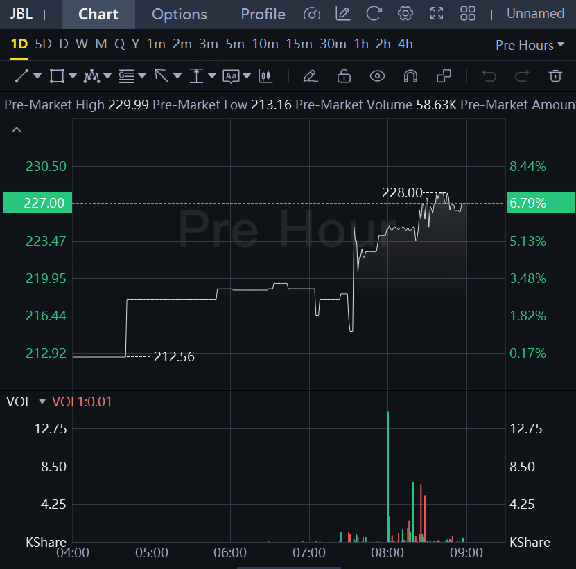 Jabil shares were up 7% in premarket trading Wednesday. The stock has climbed 48% as of Tuesday's close, bolstered by strong demand from artificial-intelligence and cloud-computing infrastructure customers.