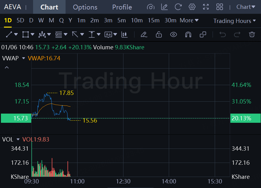 Shares of lidar maker Aeva Technologies surged early Tuesday after the company said it had been selected as a lidar supplier for Nvidia's autonomous-vehicle platform. Aeva stock was up 20% at $15.73 a share.