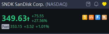 Shares of SanDisk Corp. soared more than 27% to $349.63 on Tuesday as investors continued to pour money into the flash memory company.