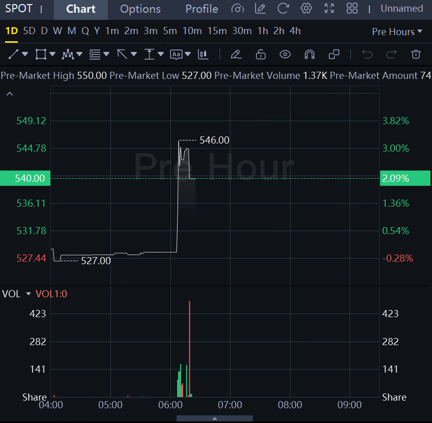Shares of the Swedish streaming giant rose 2% in premarket trading.