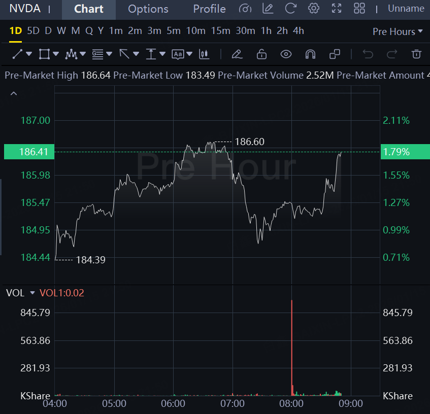Nvidia shares were up 1.8% at $186.41 in premarket trading. The stock fell 1.4% on Wednesday.