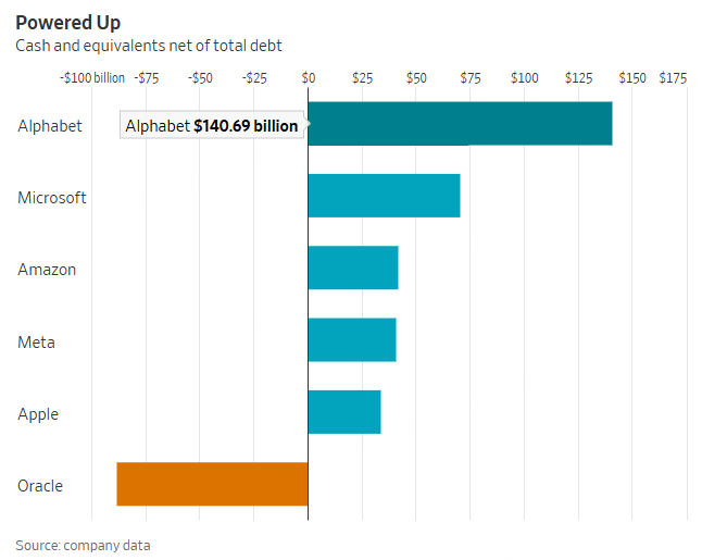 And among its deep-pocketed peers, Google's are the deepest -- which puts the company in the best position to try this new approach. The company has about $141 billion in cash net of debt, the highest balance by far of any of its megacap tech rivals. It also currently sports the highest annual operating cash flow -- $151 billion -- of any public company, according to data from S&P Global Market Intelligence.