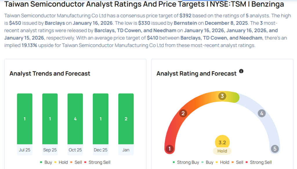- TD Cowen analyst Krish Sankar maintained Taiwan Semiconductor with a Hold and raised the price target from $325 to $370.