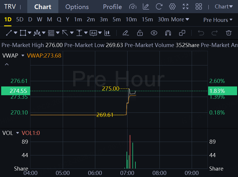 Shares of Travelers jumped 1.8% after earnings report.