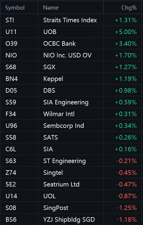 The Straits Times Index (STI), a key benchmark for the Singapore Exchange, ranged between 4,839.26 and 4,895.15 throughout the day. It ended the session at 4,891.45, up 63.13 points or about 1.3% compared to Thursday's close.