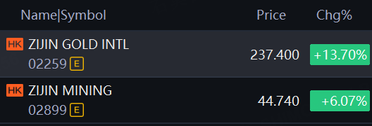 Zijin Gold rocketed 13.7% while Zijin Mining surged by 6% following its announcement.