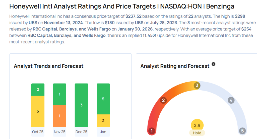 - RBC Capital analyst Deane Dray maintained Honeywell with an Outperform rating and raised the price target from $249 to $268.