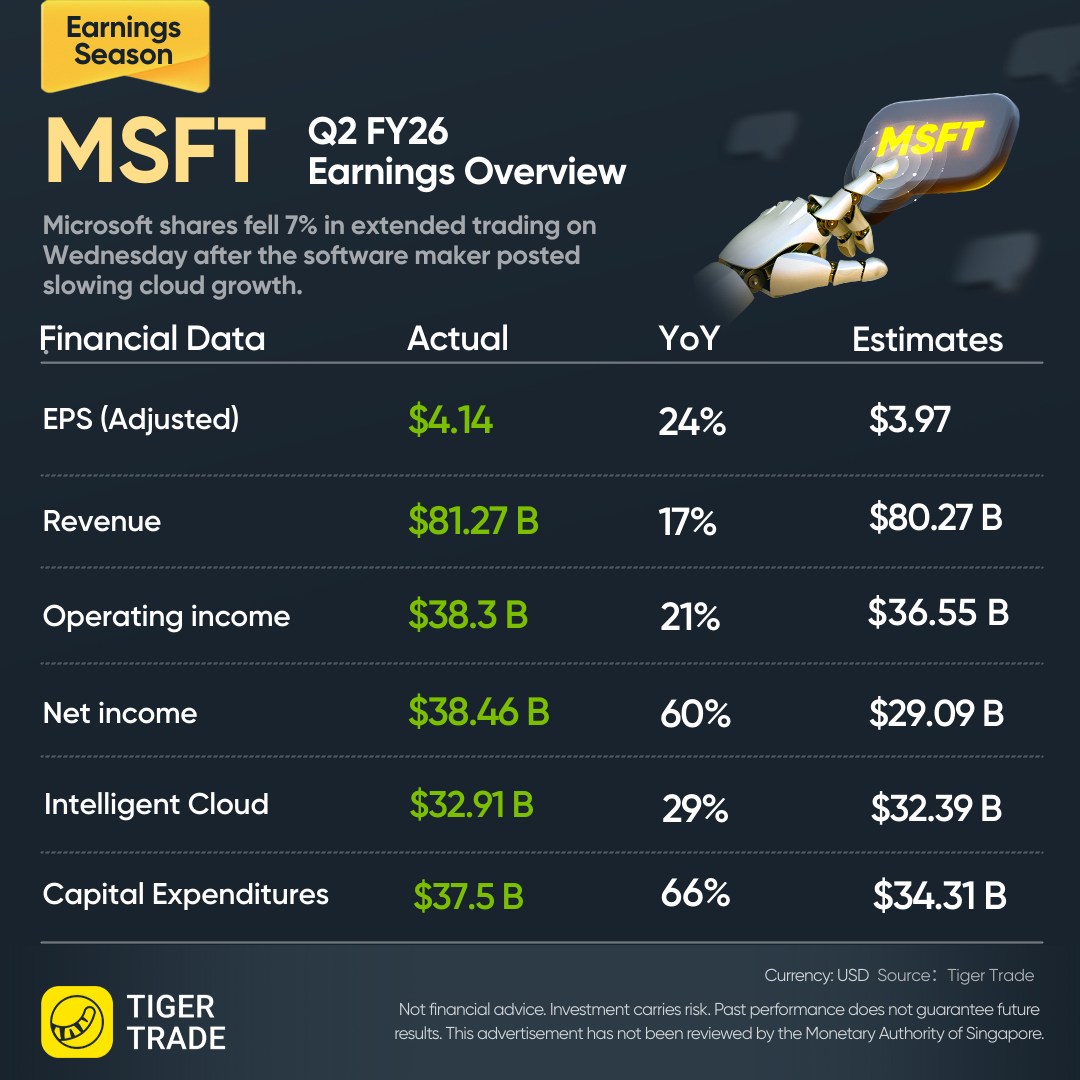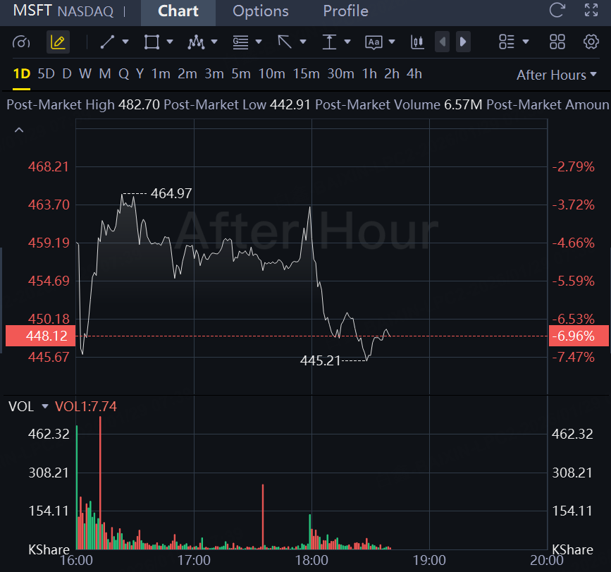 Microsoft shares fell 7% in extended trading on Wednesday after the software maker posted slowing cloud growth.
