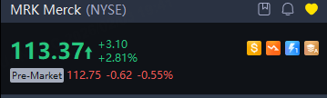 Merck reported an adjusted profit of $2.04 per share for the quarter, ahead of analysts' estimate of $2.01.