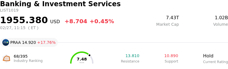 BlackRock Inc (BLK) moved down by 4.24%. The Banking & Investment Services industry is up by 0.45%. The company underperformed the industry. Top 3 gainers of the industry: PRA Group Inc (PRAA) up 17.76%; Marathon Bancorp Ord Shs (MBBC) up 6.14%; Sentage Holdings Inc (SNTG) up 5.05%.