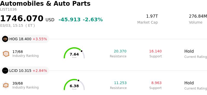 Cummins Inc (CMI) moved down by 3.22%. The Automobiles & Auto Parts industry is down by 2.63%. The company underperformed the industry. Top 3 gainers of the industry: LOBO EV Technologies Ltd (LOBO) up 4.67%; Harley-Davidson Inc (HOG) up 3.55%; Lucid Group Inc (LCID) up 2.84%.