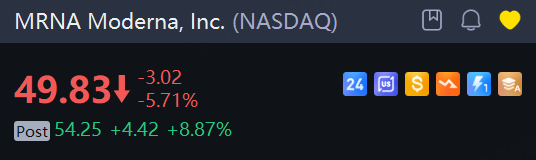 Moderna shares jumped 8.9% in after-hours trading, while Arbutus fell 14% and Roivant was flat.