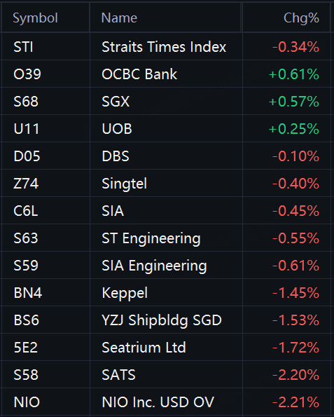 Singapore shares closed lower on Thursday, tracking losses across the region as the U.S. issued Iran a 15-point plan to end the war.