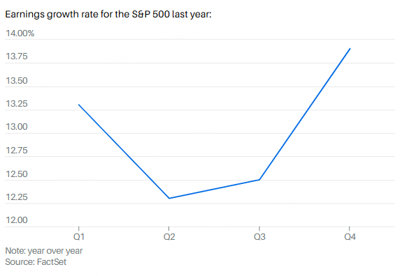 Investors are likely to see tech and financial stocks drive the lion's share of earnings growth over the first half of the year, dashing hopes that a broadening of the prewar rally would wean the market from its reliance on those sectors heading into the start of the first quarter reporting season.