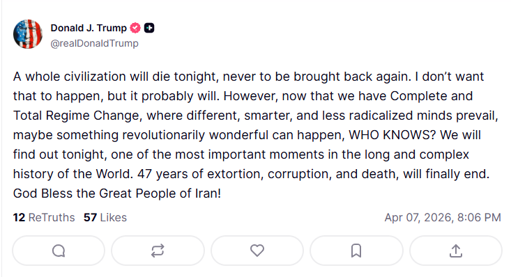 A whole civilization will die tonight, never to be brought back again. I don’t want that to happen, but it probably will. However, now that we have Complete and Total Regime Change, where different, smarter, and less radicalized minds prevail, maybe something revolutionarily wonderful can happen, WHO KNOWS? We will find out tonight, one of the most important moments in the long and complex history of the World. 47 years of extortion, corruption, and death, will finally end. God Bless the Great People of Iran!
