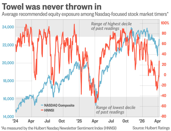 Instead, short-term stock-market timers have remained relatively bullish during the Iran war that began on Feb. 28. And after a two-week cease-fire was announced, market-timers stayed bullish.