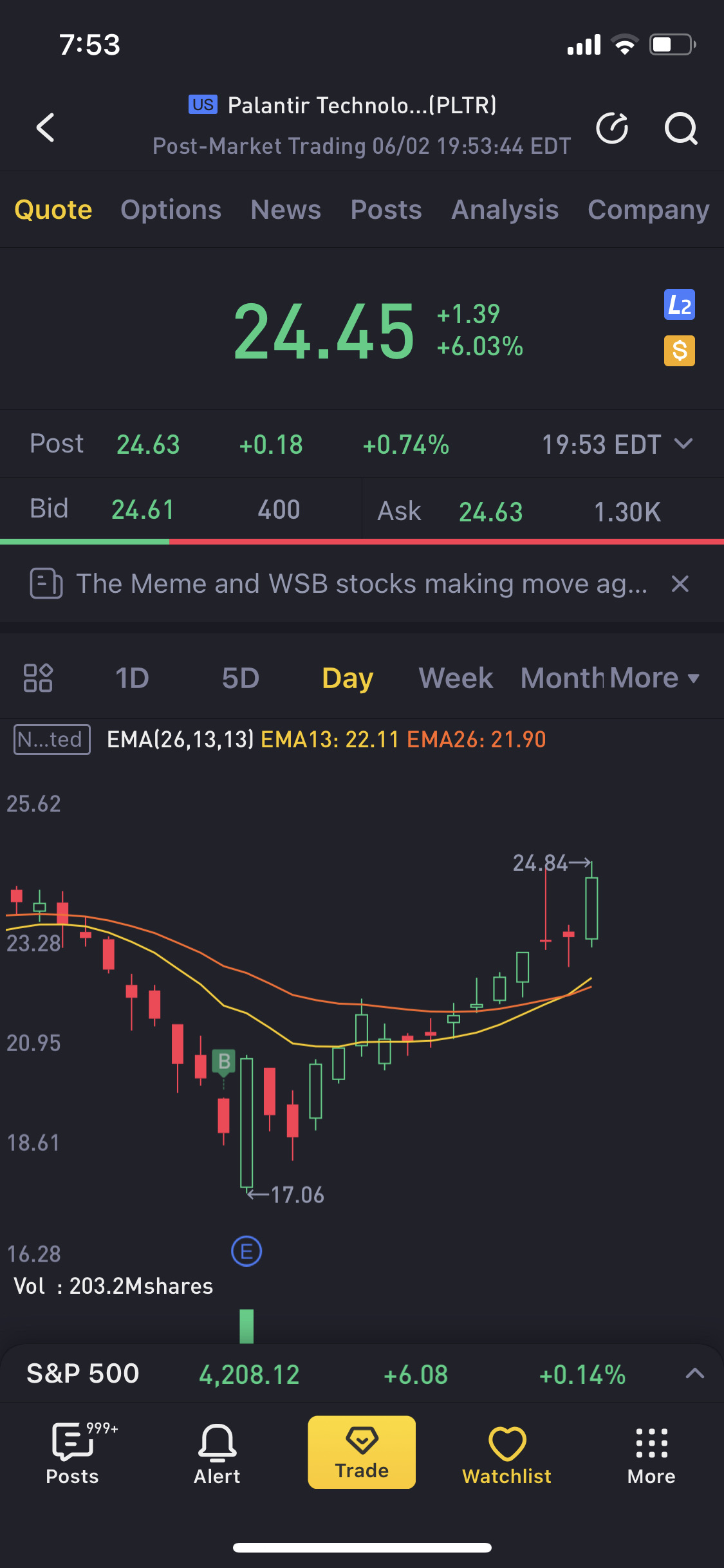 $Palantir Technologies Inc.(PLTR)$Stay firmthis week and challenge resistance at $25 [Miser] [Miser] [Miser] [Cool] [Cool]