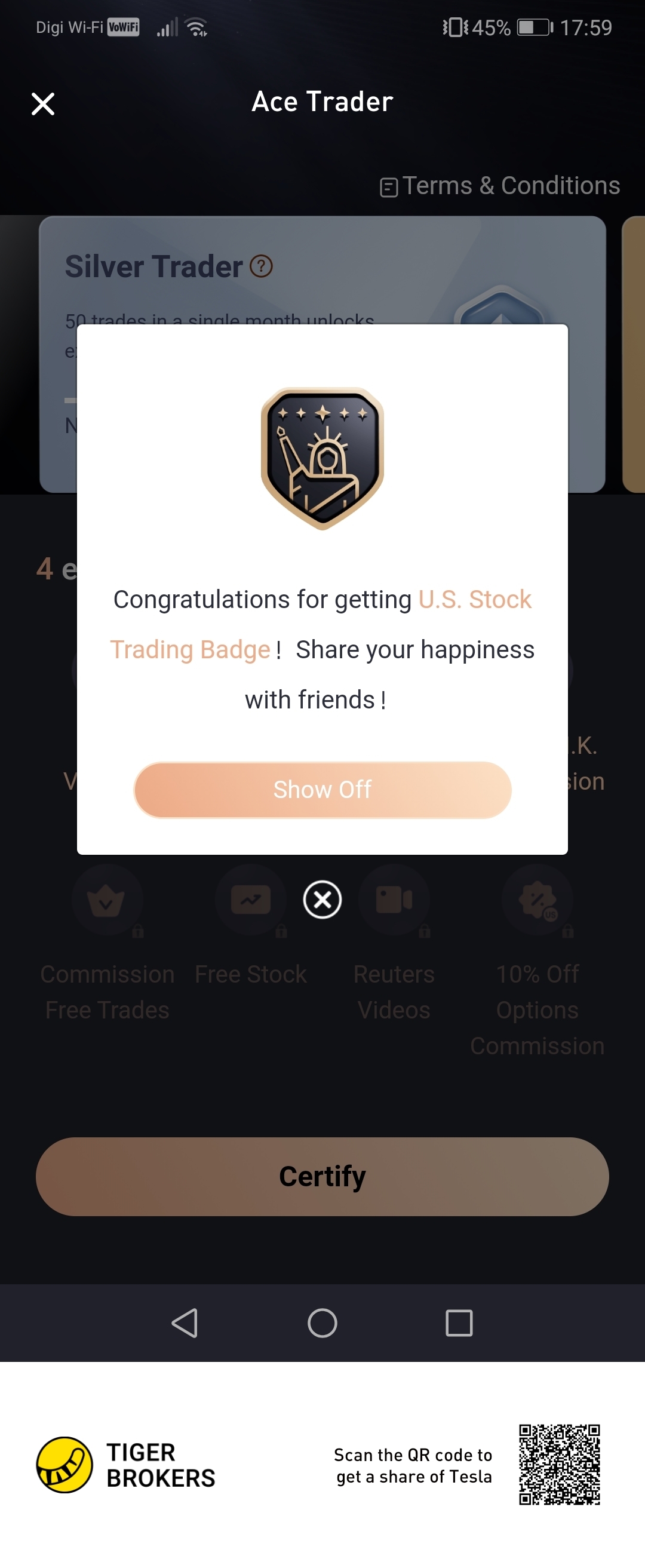 Yeah! Having U.S. Stock Trading Badge finally! Thank you Tigerbrokers!