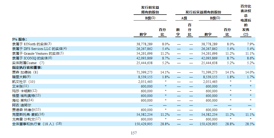 - 機構持倉:早期,Marqeta 從包括 83North、DFS Services、Granite Ventures、ICONIQ 和 Coatue 在內的投資者那裏獲得了至少 5.02 億美元的股權投資。與投資者 Granite Ventures 有關聯的實體持有該公司 11.2% 的股份。機構老股東沒有參與IPO認購,但也沒有人套現,這個情況還是挺少見的。