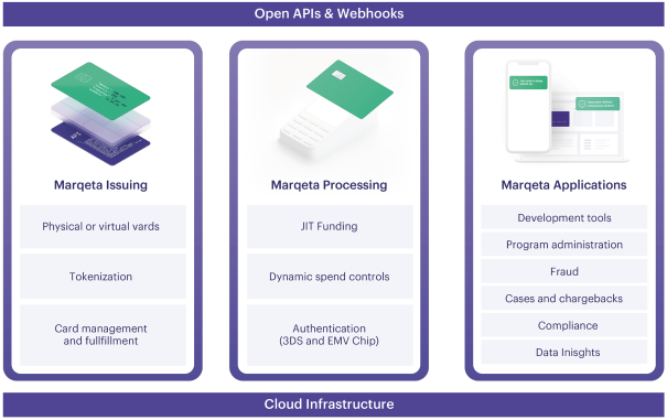 在其核心,Marqeta的平臺提供三個主要功能:Marqeta 發行、Marqeta 處理和 Marqeta 應用程序,用於啓動、擴展和管理卡計劃。