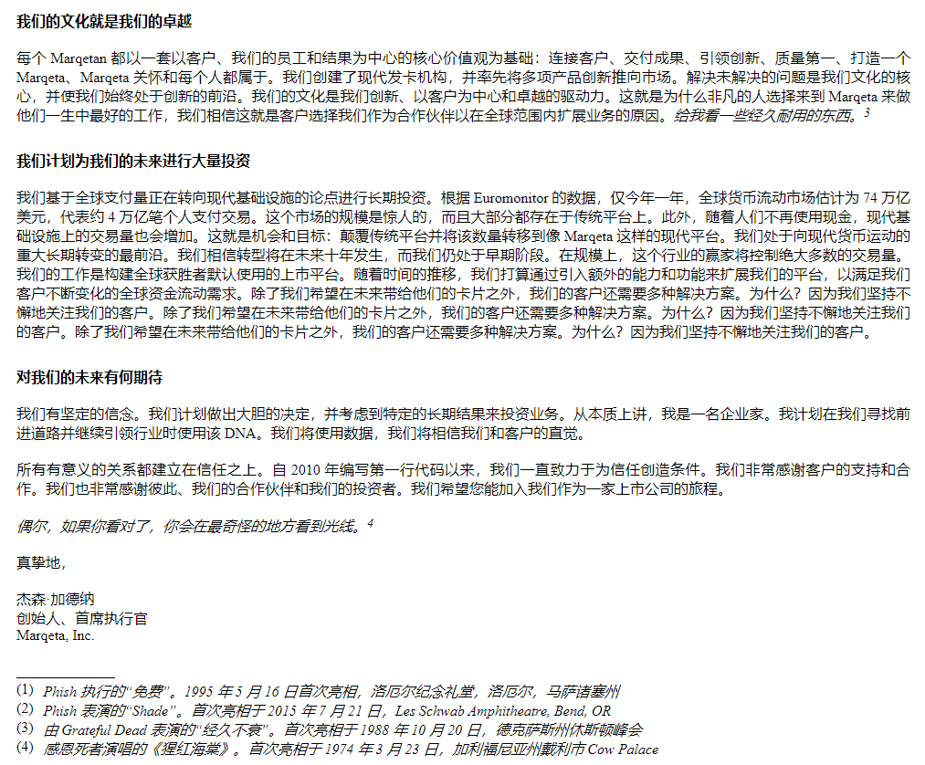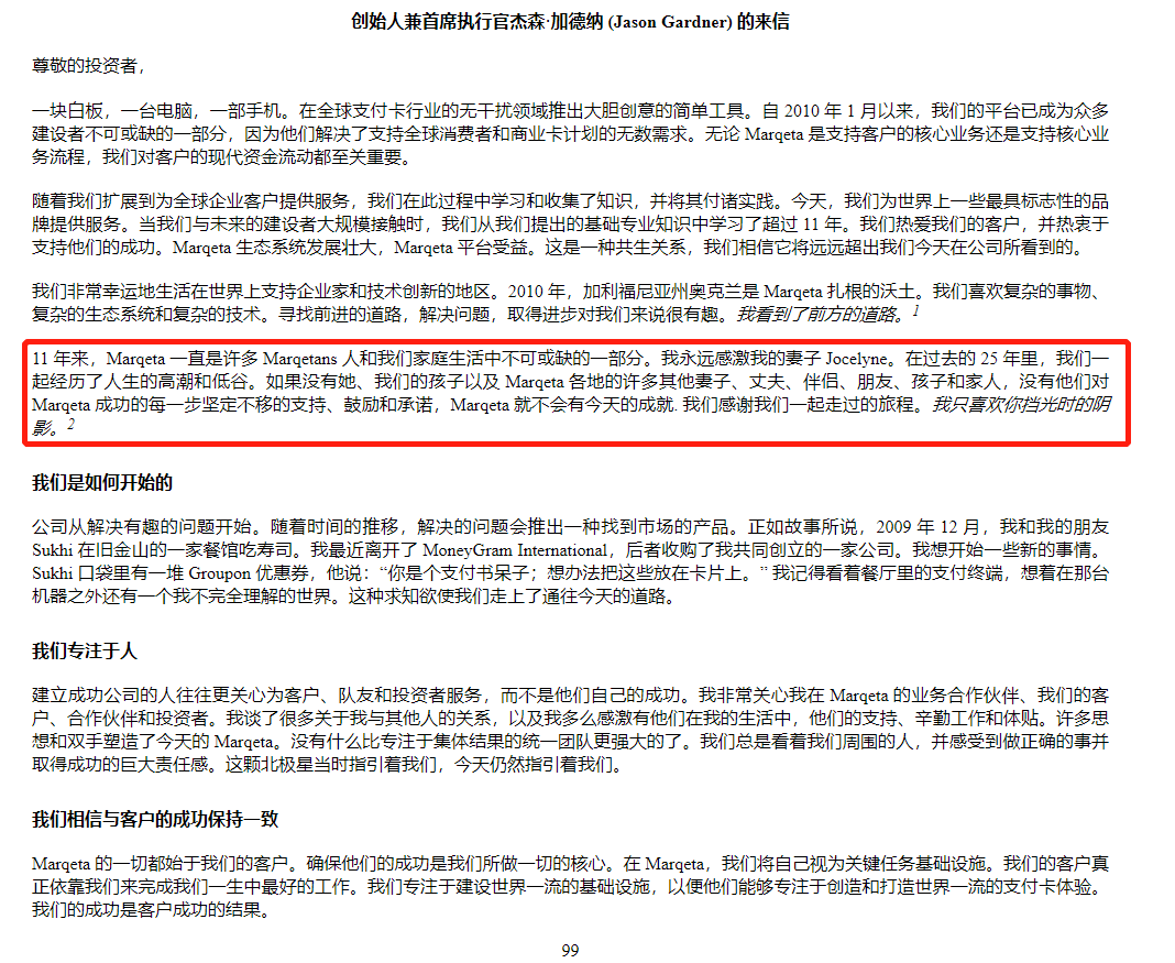 現在公司即將上市,老闆還給老婆寫了封情書,股東信引用了三首搖滾樂,看來老闆是個不折不扣的搖滾樂迷哈哈。