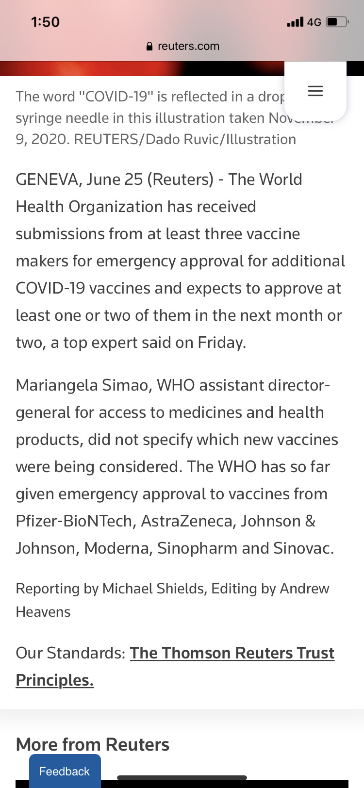 $Histogenics(OCGN)$WHO expects to give emergency approval to 1-2 more COVID vaccine in coming months