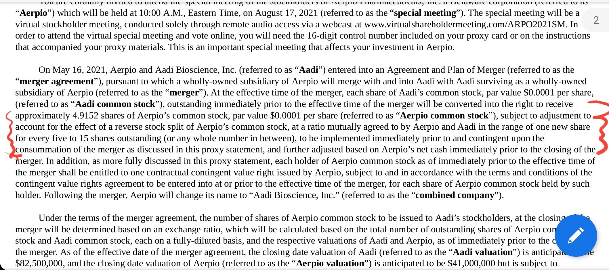 $Aerpio Pharmaceuticals Inc(ARPO)$ HC Wainwright assumed a 7:1 reverse stock split for its post-merger target price of $22, meaning around $3.15, which is still 50% gains from its current price of around $2.05 now!