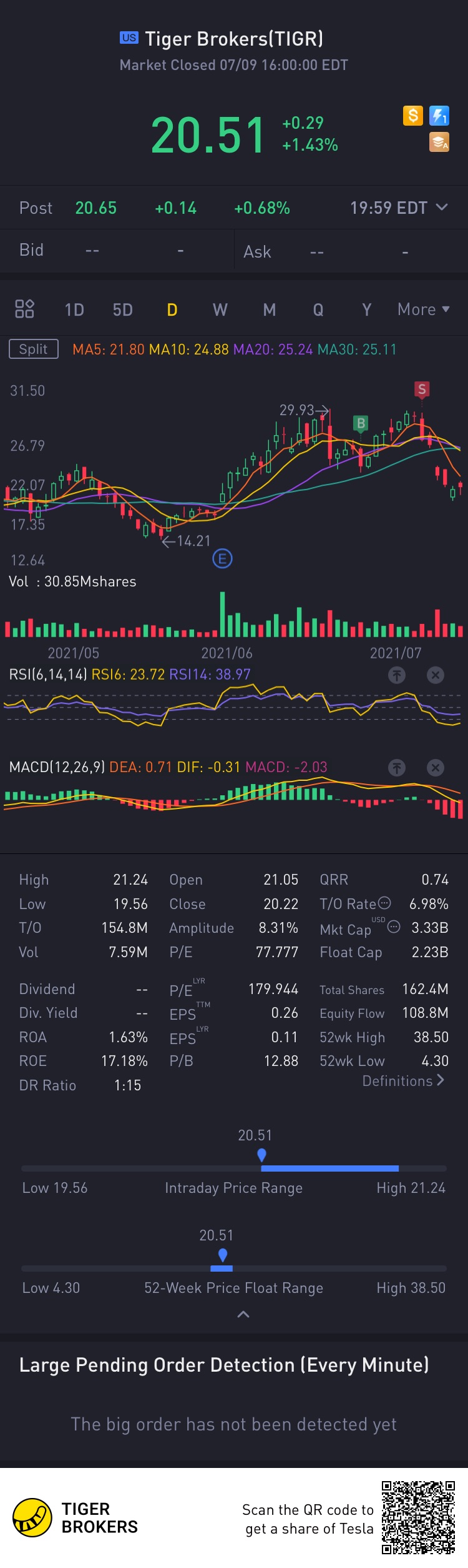 Eyeing on tiger brokers since last Thursday to go in Long