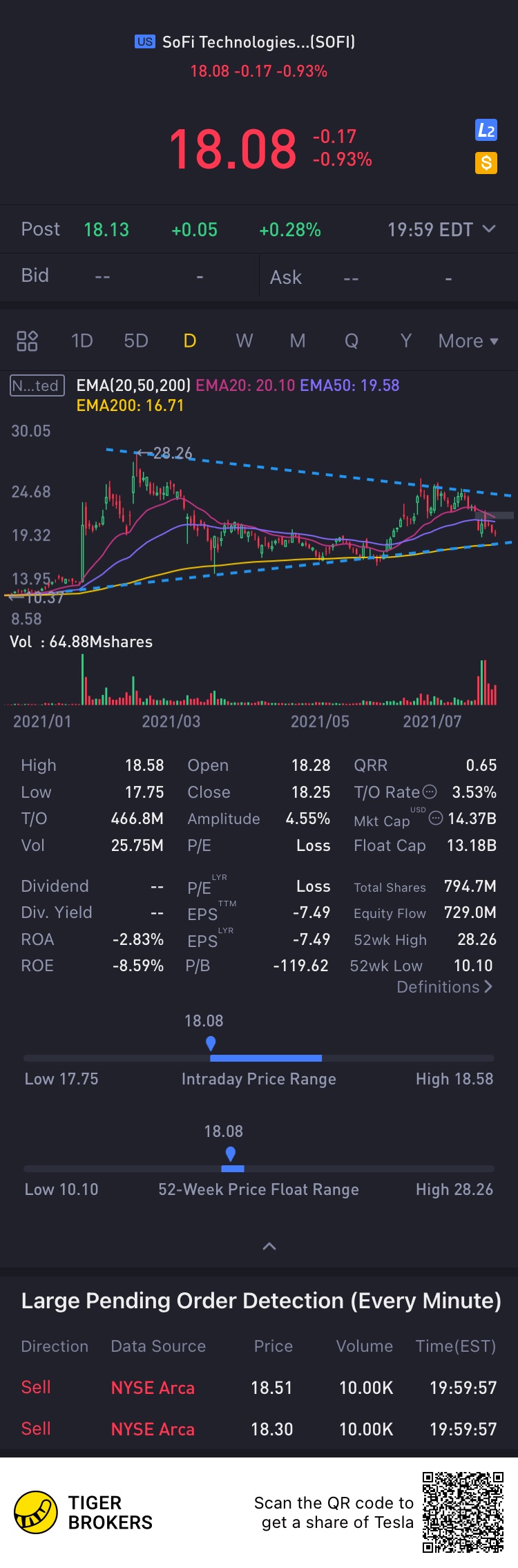 $SoFi Technologies Inc.(SOFI)$- reaching close to my potential entry point at 200EMA [Blush]