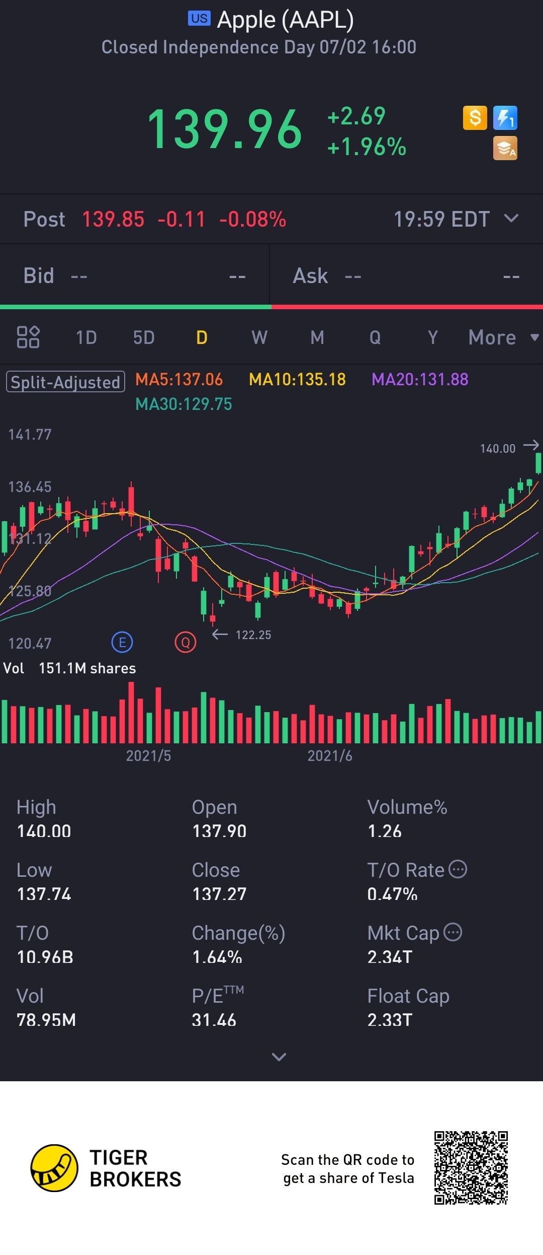 $Apple(AAPL)$ up up up