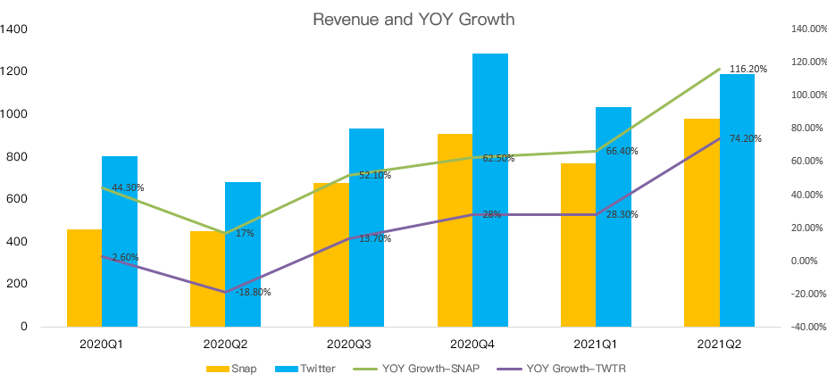 As far as social platforms are concerned, the strong performance of basic Q1 continued in the second quarter, and the revenues of Twitter and SnapQ2 maintained a high double-digit accelerated growth trend, with a year-on-year increase of 74% and 116% respectively.