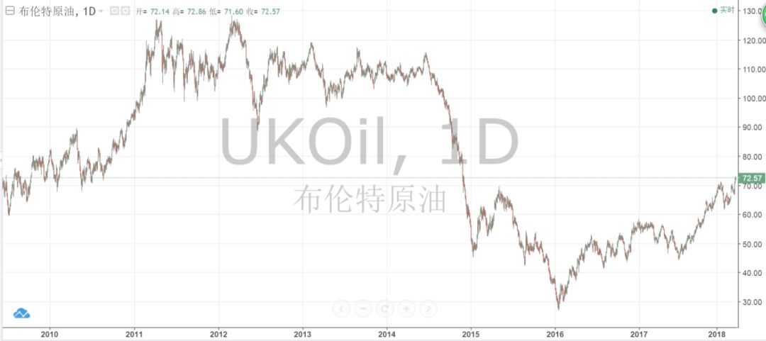 布倫特原油價格趨勢(2009.7-2018.4)