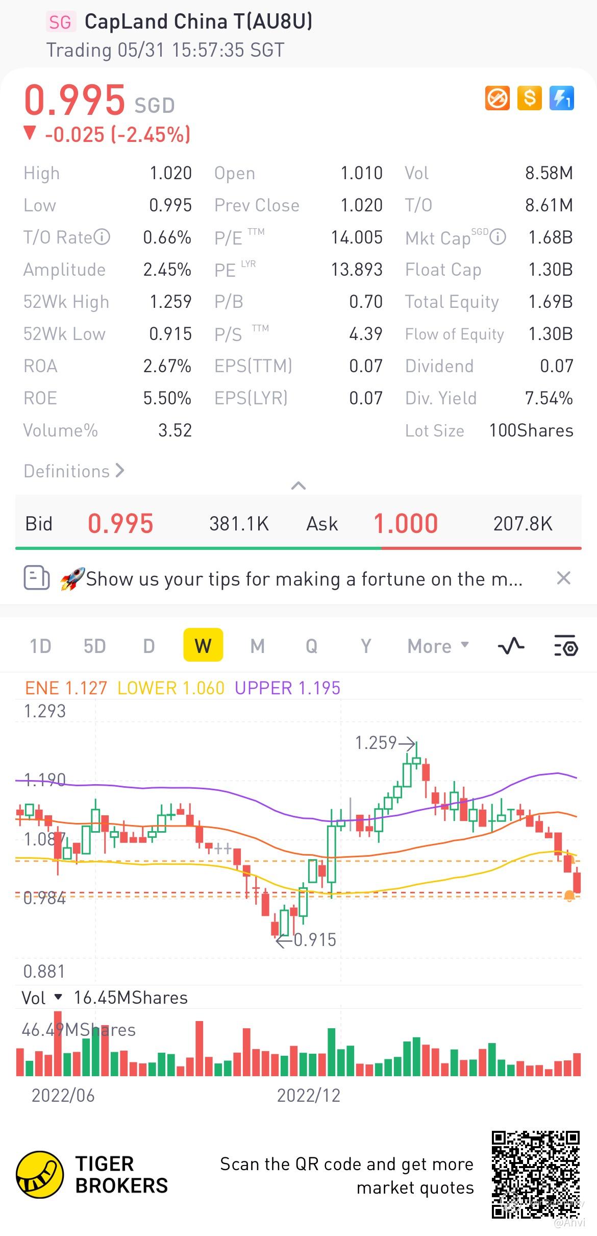 $CapLand China T(AU8U.SI)$ Low P/B and continues to test support lines. Has the market already factored in the risks associated with the Chinese retail/ppty sector [Doubt] ?