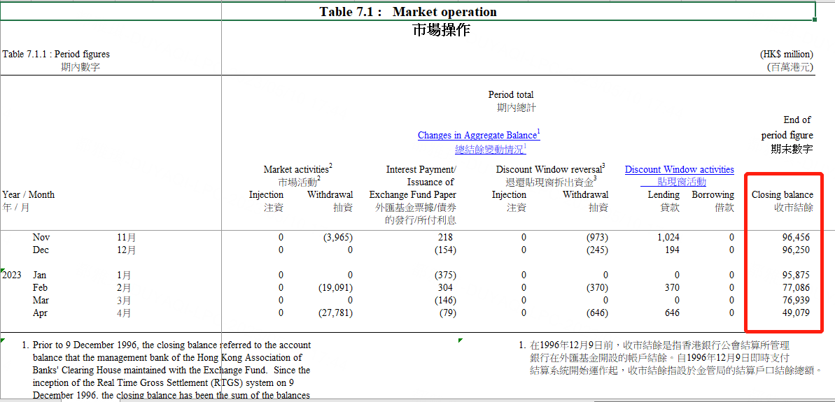 如下圖所示,從2022年底到2023年4月份,總結餘持續下降,Hibor也因此被持續推升。