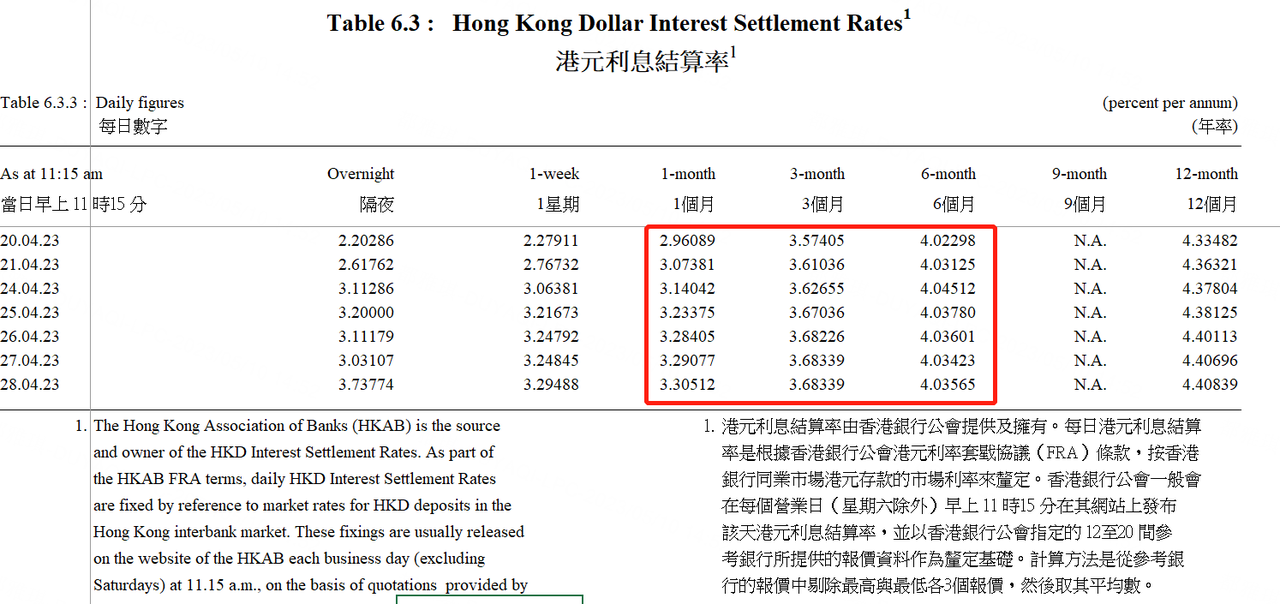 1. 港元市場利率滯後於美元市場。