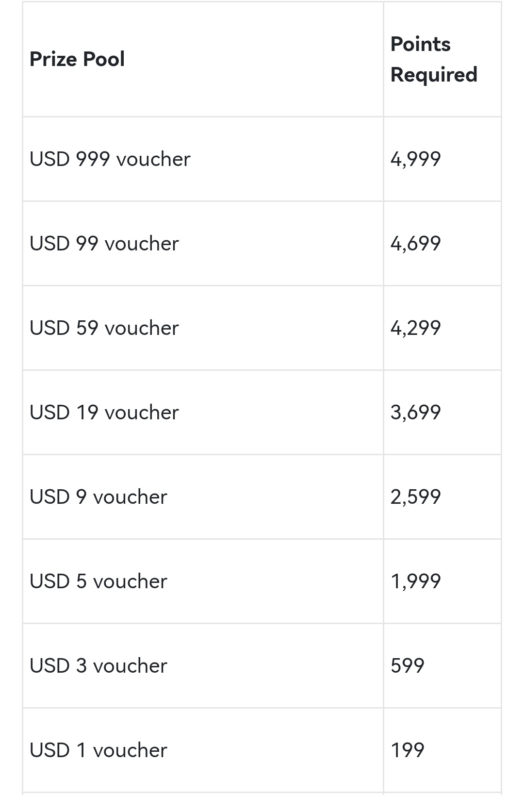 1. Reserve 1 redemption chance for cash voucher and use other chances to redeem 10 points, 10USD vouchers.