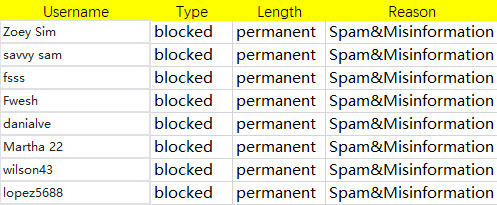 Here is the List of Banned Users for this week: